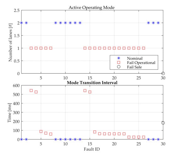 Example of a fail safe after a cross-lane fault, fault ID = 30 in Table 3.