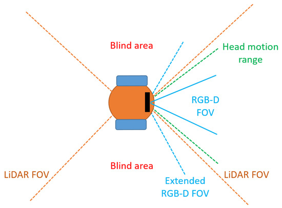 Sensors that are most frequently used (i.e., [17,18,19]) are the Intel RealSense [20] and the Kinect [21], both characterized by a limited depth range and field of view. Thus, in addition to the local path planning algorithm strategies listed in [7,10], there is also a new category that is gaining momentum in local navigation and it is associated with the field of collision avoidance with limited field of view sensing [3,4,5]. These methods, however, directly try to solve the problem at the level of path planning, without extending the space observed by the sensors.