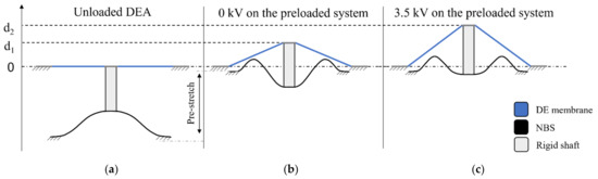 - Bruch, P.; Loew, S.; Hau, G.; Rizzello, S.S. Fast model-based design of large stroke dielectric elastomer membrane actuators biased with pre-stressed buckled beams. In Proceedings of the SPIE Smart Structures and Materials + Nondestructive Evaluation and Health Monitoring, Denver, CO, USA, 4–8 March 2018. [Google Scholar] [CrossRef]