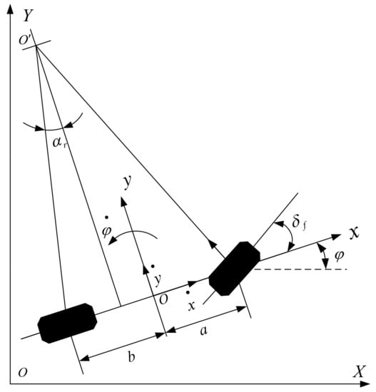 The vehicle dynamics model is shown in Figure 1. By applying Newton’s law to the vehicle’s center of gravity, the dynamic model can be written as []: