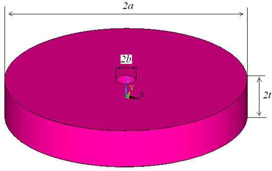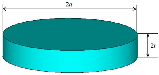 Considering the coupling vibration, the resonant frequency is closely related to the size of the disk oscillator, and the fundamental frequency of the thickness vibration is quite different from the one-dimensional vibration theory. Figure 1 shows a piezoelectric ceramic wafer polarized along the thickness direction with a diameter of 2a and a thickness of 2t.