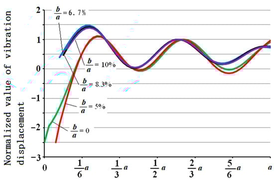 The center hole will affect the surface vibration displacement, impedance characteristics and electroacoustic performance of the piezoelectric disc transducer. The optimal design scheme of the transducer can only be obtained by comprehensively considering various factors. When the radius of the central hole is a0 and the ratio of a0/a is different, the modal analysis displacement curve in the normal direction of the particle vibration on the surface of the piezoelectric disc at the thickness vibration frequency point is shown in Figure 7.