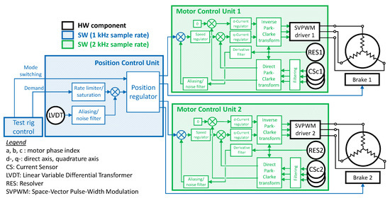 - dual redundant three-phase Permanent Magnets Synchronous Machines (PMSMs) with surface-mounted magnets and sinusoidal back-electromotive forces, driven via Field-Oriented Control (FOC) technique;