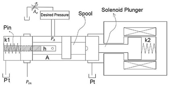 Power transmission that involves compact machinery and extreme forces is only possible with the use of hydraulic equipment. With sufficient means of controlling the pressure and flow in a hydraulic system, the movement of mechanical loads can be controlled. As is clear from the studies done in the past, the two most important variables to be controlled in a hydraulic control system are flow rate and pressure [1,2,3,4]. That is why solenoid-actuated pressure control valves are widely used in modern hydraulic machinery to perform functions, such as motion control of multi-actuator systems [5]. Pressure relief valves are used for safety or pressure limiting functions, while pressure-reducing valves are used to draw one or multiple low-pressure outputs from a higher pressure source. In any case, a poppet or a spool is used to actuate the valve with the help of a solenoid actuator or some other force exerting means.