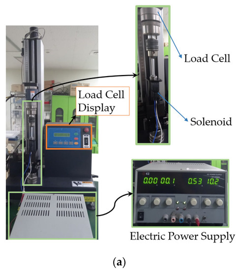 Solenoid actuator force measurement. (a) Apparatus. (b) Measurement Results.