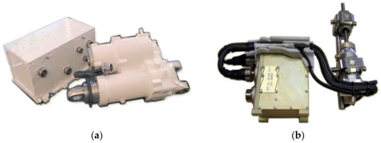 Additionally, two design concepts can undoubtedly help to reduce cost, weight and development time. The first one is mutualization. As already mentioned, many actuators do not operate at the same time. Moreover, some of them operate in sequence: e.g., up-unlock/gear-down/down-lock before landing, then braking after touch down. This makes it possible to mutualize the power networks and the actuator electronics (including heat sinks and DC-link), in a way similar to that investigated in the Thermae II project. Additionally, the non-essential electric loads can be disconnected so that safety-critical ones can be supplied in case of reduced power capability on a given supply network. This enables the power distribution system to be downsized while still meeting the reliability requirements. The second concept is modularization and standardization, [43,44]. Development costs are high in aerospace, in particular for qualification and certification. Decomposing an actuator into modules that are standardized can potentially reduce cost- and time-to market. This is well illustrated by Figure 22, which displays a cost-effective module combining a 5 kW hybrid power drive and a power core module controller [45]. However, for power transmission devices, modularization and standardization come with a weight penalty that makes the solution more difficult to implement in practice for geometrical interfaces of mechanical elements (e.g., reducers and nut screws) than for signal or power electronics (e.g., power control modules (PCMs), and control and monitoring modules (CMMs)).