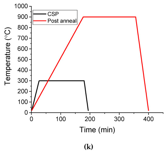 After the binder burn out process, a steaming process was carried out to reintroduce moisture in the sample. As seen in Figure 1g, steaming was carried out by hanging the sample in a beaker containing water at 120 °C. This process allowed the lead nitrate in the tapes to absorb the water vapor that condensed onto the sample. After steaming for 1.5 h, the sample was immediately loaded into the die for cold sintering (Figure 1h).