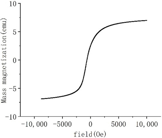 The experimental part of this article uses the MRF-J25T (Chongqing Materials Research Institute Co.Ltd, Chongqing, China) (hydrocarbon oil carrier fluid MRF) magnetorheological fluid developed by the Chongqing Institute of Materials. The relevant characteristic parameters are shown in Table 1. Figure 2 describes the relationship between B–H magnetization curve of MRF-J25T magnetorheological fluid.