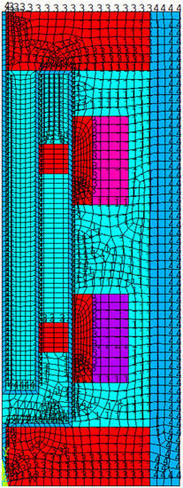 When dividing the grid, choose the mode of smart grid division. For the entire model, use the smart grid division with Smartsize of 1, which means that the grid precision is the highest. Choosing the grid precision to 1 is conducive to the calculated ring multi-channel The magnetic field distribution result of the type magnetorheological valve is more accurate. The generated grid is shown in Figure 7, where the grid shape is quadrilateral. It can be seen that the mesh density is denser at the damping gap, which is beneficial to analyze the magnetic field distribution in the sealing gap.