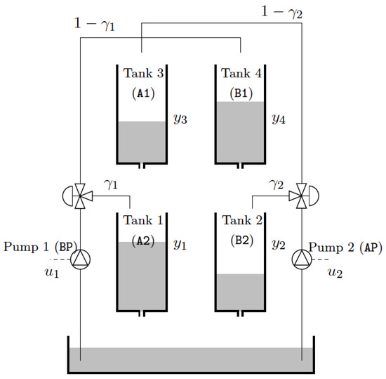 - Johansson, K.H. The quadruple tank process: A multivariable laboratory process with an adjustable zero. IEEE Trans. Control. Syst. Technol. 2000, 8, 456–465. [Google Scholar] [CrossRef] [Green Version]