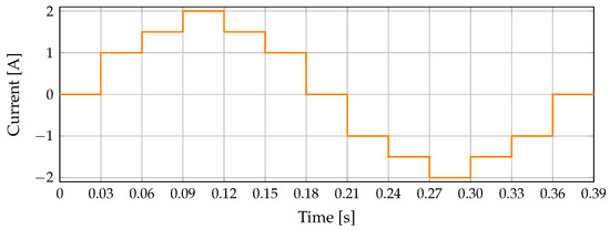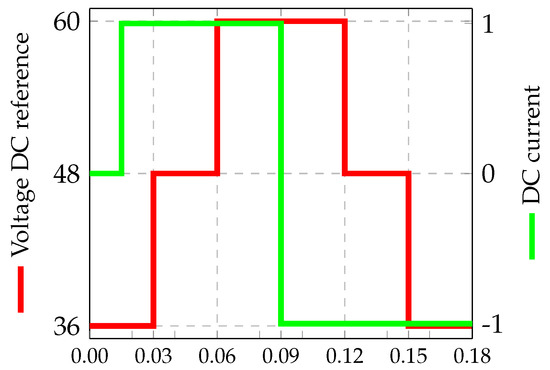 The dynamic response of the proposed control is evaluated against different disturbances generated with current steps in the DC bus to emulate the charging/discharging processes of the converter. These current steps are 1 A, 1.5 A, and 2 A, both positives, and negatives with 30 ms intervals, as depicted in Figure 3.