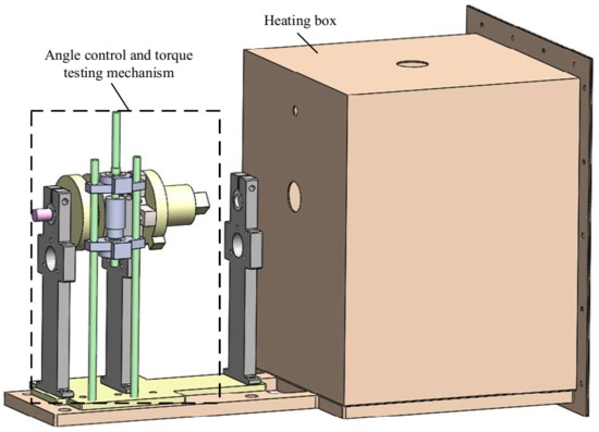 As shown in Figure 2, the test system includes angle control, torque testing device, and heating box. As shown in Figure 3, PVA includes a rotating shaft, bearing support and mounting base. The test system is shown in Figure 4. Utilizing the self-locking characteristics of worm gear, the system can control the angular deformation at any position. Using the WAN-5 torque sensor to record the output torque. E6B2 encoder was used as an angular displacement sensor to record angular deformation. The temperature was controlled by heating box.