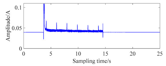 The working-current signal of the overload-current fault is shown in Figure 5. It can be seen that it has a higher current in the stable working phase and a current of 0 is observed in the termination phase.