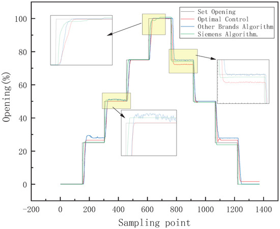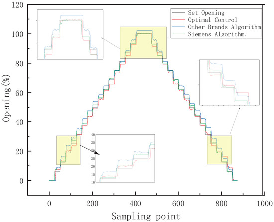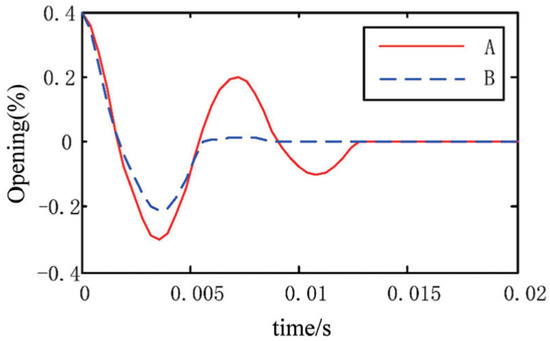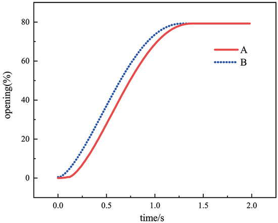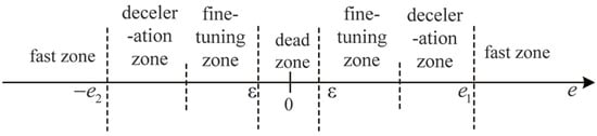 - When the valve position error is in the fast zone, the fully open control is adopted; it can quickly reduce the error. The fully open control can meet the adjustment time and avoid the influence of static friction of the valve stem during the transition from static to moving, as shown in Equation (24).