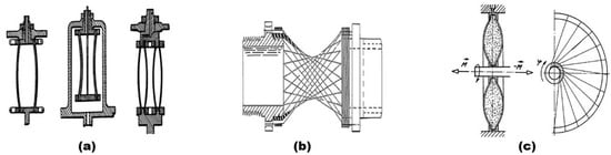 Embedded muscle: (a) Morin muscle [25]; (b) Paynter Hyperboloid Muscle [19]; (c) Kleinwachter torsion device [37].