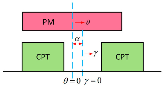 In this study, the relative positions between the PM and the CPT are shown in Figure 7, which uses θ = 0 to indicate location of the centerline of the PM and γ = 0 to indicate the location of the centerline of the claw pole slot. The distribution of the air gap magnetic density along the surface of the CPT can be approximated as