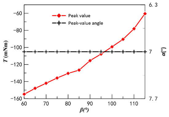 Figure 11. Curve of β versus peak cogging torque.
