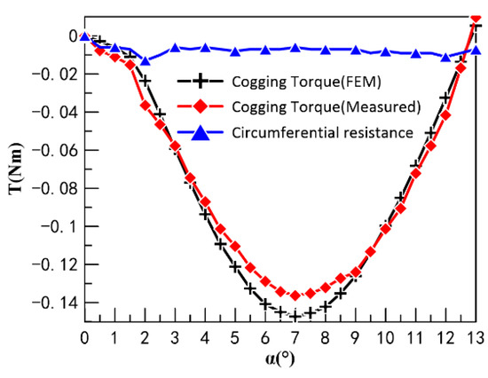 where μ 0 is the air permeability and the magnetic field energy W depends on the structural size of the motor, the performance of the PMs, and the relative position between the stator and rotor.
