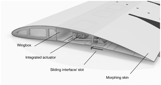 - Mkhoyan, T.; Thakrar, N.R.; De Breuker, R.; Sodja, J. Design of a Smart Morphing Wing Using Integrated and Distributed Trailing Edge Camber Morphing. In Proceedings of the ASME 2020 Conference on Smart Materials, Adaptive Structures and Intelligent Systems. American Society of Mechanical Engineers Digital Collection, Irvine, CA, USA, 14–16 September 2020. [Google Scholar]