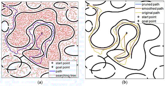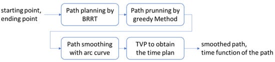 The step-by-step process of the proposed path planning in this paper is given in Figure 4, including BRRT and three improving methods.