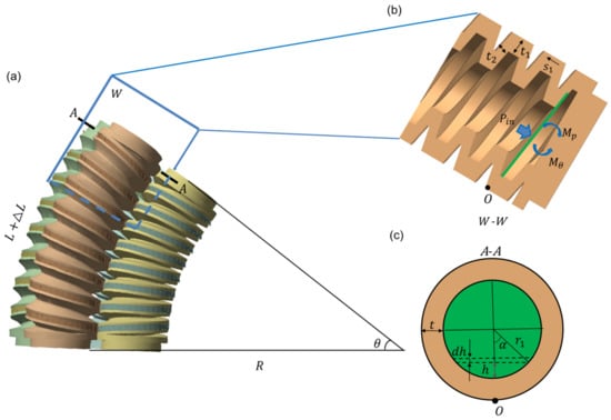 where is the helix angle; . Neglecting the mutual resistance of the actuators, the torque generated by the pressure on inner helical structure surface with respect to the fixed end can be expressed as: