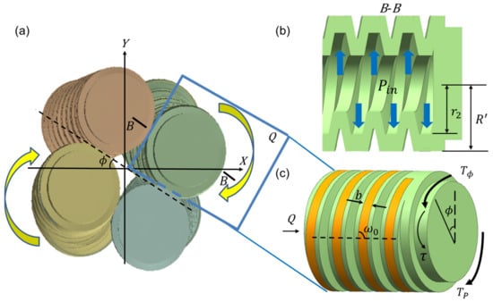 The twisting of the actuator is mainly caused by the pressure applied on the inner helical structure surface of the chamber []. The parametric equation for the helix curvature of the inner helical structure can be expressed as: