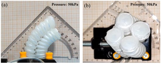 - Alici, G.; Canty, T.; Mutlu, R.; Hu, W.; Sencadas, V. Modeling and Experimental Evaluation of Bending Behavior of Soft Pneumatic Actuators Made of Discrete Actuation Chambers. Soft Robot. 2018, 5, 24–35. [Google Scholar] [CrossRef]