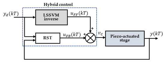 For this purpose, a parallel controller structure consisting of an inverse LSSVM controller and an RST controller was proposed in this paper, as shown in Figure 7. The input control signal for the piezoelectric actuator was generated by summing two commands: a feedforward command generated by the inverse model and feedback command generated by the RST controller. According to a previous study [44], it was found that the use of RST in parallel with inverse feedforward control could efficiently control different nonlinear processes with more precise motion tracking than the cascade control structure. In addition, the inverse feedforward controller, based on the LSSVM model, may not guarantee accurate convergence of the output to the reference in the cascade control structure. This is because the outputs of the RST controller are given as inputs to the inverse model, whereas the inverse LSSVM model is usually trained by the desired displacement values. The RST controller is well-suited to be combined with our approach because of its simple structure, fast response, and insensitivity to disturbances [27]. Therefore, this approach integrates the advantages of the LSSVM-based controller, which allows high modeling accuracy for piezoelectric hysteresis, and the RST controller, which helps to overcome disturbances and enhances the robustness of tracking. The details of the inverse model and RST controller are presented in the coming sections.