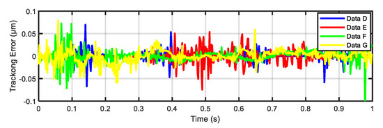 The error level between the actual output of the considered piezoelectric actuator and estimated output of the proposed model for test data D, E, F, and G.