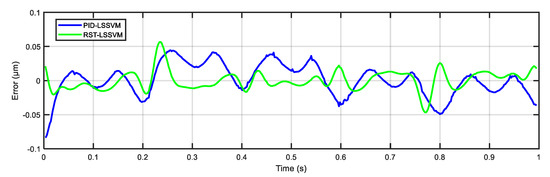 Tracking errors of the RST-LSSVM control scheme compared with the PID-LSSVM control scheme on data I.