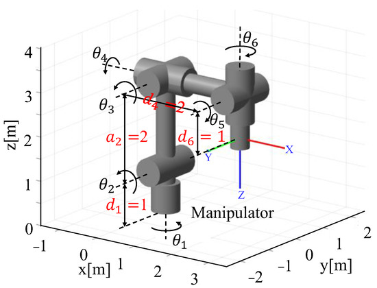 The manipulator used in this paper is a 6-DOF wrist-separated manipulator which satisfies the Piper criterion and has a closed solution [25]. The position-level kinematic model of this type of manipulator is established using the standard D-H method, and the D-H parameters table of the manipulator is shown in Table 1.