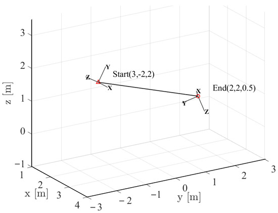 There are two main types of trajectory planning for manipulators; one is trajectory planning in joint space and the other is trajectory planning in Cartesian space [27]. Given that trajectory planning in joint space is not capable of high-precision work, this paper performs trajectory planning of Cartesian space for the manipulator, and then uses the kinematic model in Section 2 to obtain the corresponding joint-space trajectory.