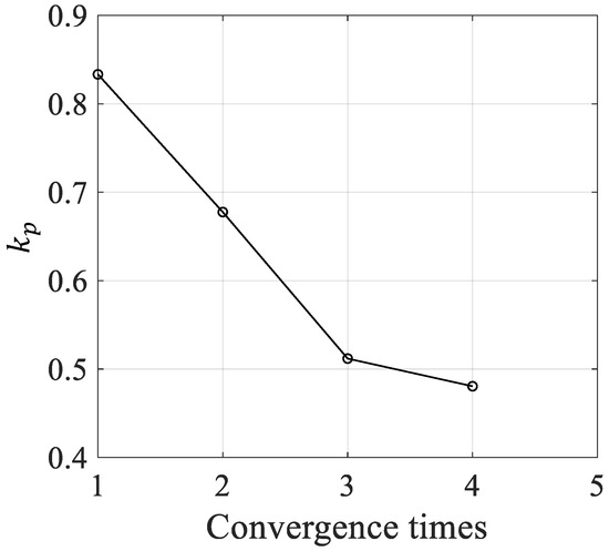 The variation in with the number of convergences is shown in Figure 16. The value obtained from the current iteration is used to update the input time for the next trajectory planning. Because the input time of the 5th trajectory planning meets the shortest time requirement of the trajectory, has only four iterations.