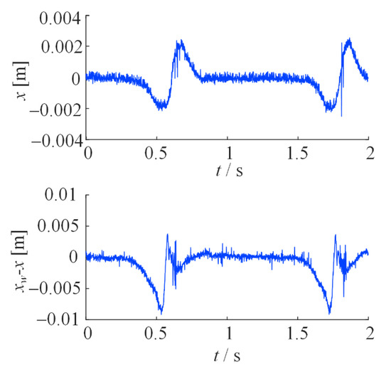 With the same controller parameters, the two control strategies are compared on a typical semi-sinusoidal road. Road excitation xr is shown in Figure 6, the excitation amplitude is 0.02 m, and the frequency of the sine wave is 10 rad/s.