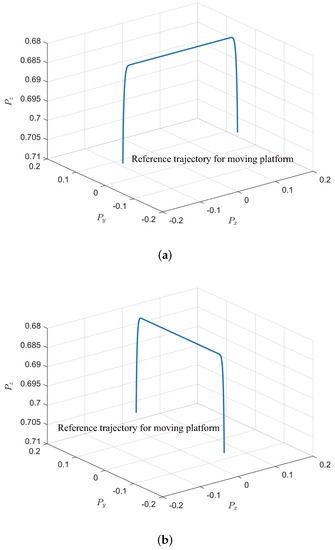 Reference trajectories of moving platform used for identification of the dynamic analytic model and model validation. (a) Reference trajectory for model parameter identification. (b) Reference trajectory for model validation.