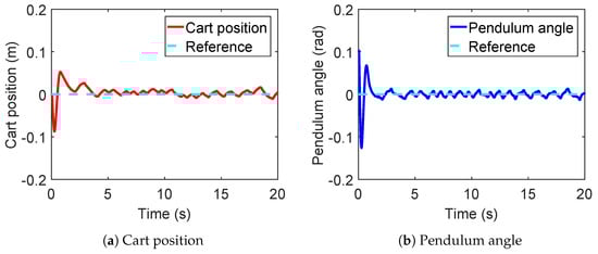 Considering the control objective of NIPVSSs is to stabilize the cart position and pendulum angle at the origin, i.e., and , to make , , and equal to 0. Therefore, the TD (14) of pendulum angle reference and the TD (17) cart position reference can be omitted, and thus further reducing the calculation time of TD.