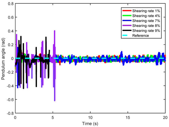 Pendulum angle (real-time control) under different intensities shearing rates.