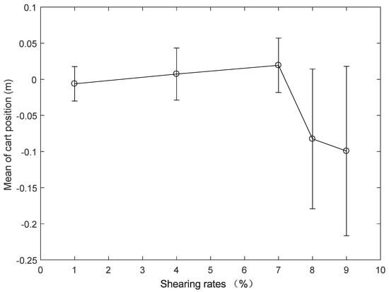 Mean and standard deviation of cart position (real-time control) under different intensities shearing rates.