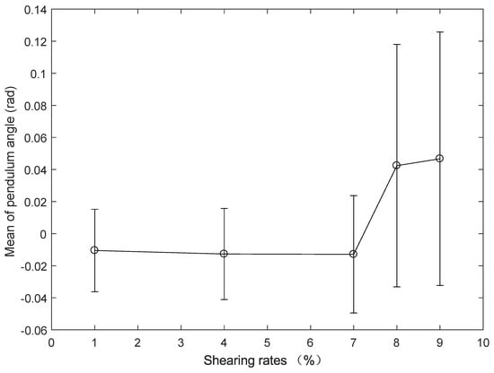 Mean and standard deviation of pendulum angle (real-time control) under different intensities shearing rates.
