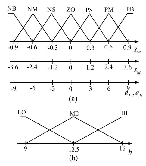Secondly, given that the height of either leg of the robot is at the limitations or , the FRBC is designed to adjust the length of its legs to maintain its height. In order to ensure that the WBR can be kept at the setting height , each fuzzy rule of the height controller can be designed as follows: