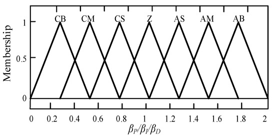 Membership functions of βP, βI, and βD.