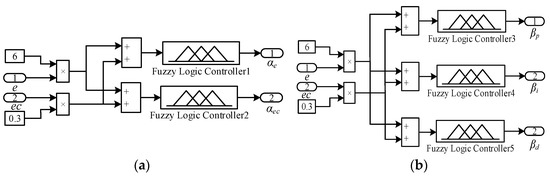 Figure 9 shows the simulation model of the domain regulation mechanism for the variable domain fuzzy PID control, which mainly consists of the input domain contraction-expansion factor (a) and the output domain contraction-expansion factor (b).