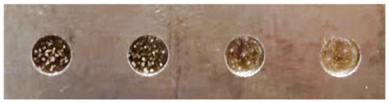 Figure 15 shows a physical image of the machined workpiece with a machining depth of 1 mm. From left to right are traditional micro-EDM, conventional PID control magnetic actuator and the traditional micro-EDM cooperative control, Fuzzy PID control magnetic actuator and the traditional micro-EDM cooperative control, variable domain fuzzy PID control magnetic actuator and the traditional micro-EDM cooperative control. By comparing the surface quality of the machined workpiece, it can be seen that the variable domain fuzzy PID control magnetic actuator and the traditional micro-EDM cooperative control had better machining results. The surface carbon accumulation of the machined workpiece was significantly reduced, and the surface quality of the machined workpiece was improved.