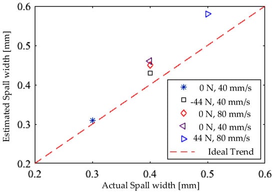 The time difference between these two instants can be mapped into the average spall width as in (Equation (1)) [11]: