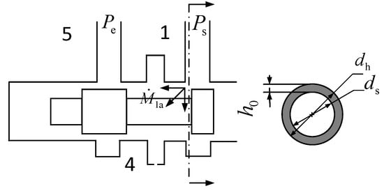 where represents the gap between the spool and the sleeve; indicates the inner diameter of the sleeve, with a value of 0.006023 m; represents the outer diameter between the spool tables, with a value of 0.006 m; and is:
