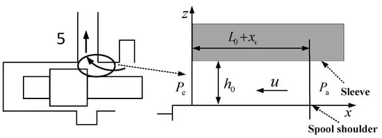 where P is the gas microelement pressure in the gap; is the viscosity coefficient of the gas, with a value of 0.0000183; u is the speed of the gas microelement in the x-direction; indicates the initial length of the gap, with a value of 0.002 m; and indicates the displacement of the valve spool.