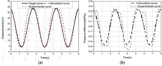 Given a sinusoidal signal, trajectory tracking experimental verification based on PID control is performed. The frequency is set to 0.381 Hz, and the obtained experimental and simulation curves are shown in Figure 20. The trend of the experiment and the simulation curves are consistent, which proves the correctness of the simulation model.