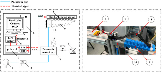- Elgeneidy, K.; Lohse, N.; Jackson, M. Bending angle prediction and control of soft pneumatic actuators with embedded flex sensors—A data-driven approach. Mechatronics 2018, 50, 234–247. [Google Scholar] [CrossRef]