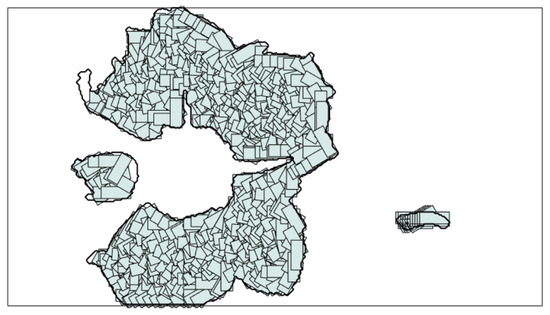 During the whole process, only one color at a time was analyzed. The considered color image was converted to a black and white image (addressed as L in the following), and the obtained areas were labeled and converted into MATLAB polyshape objects for computational reasons. The area of possible internal holes was considered negligible with respect to the larger one, and for this reason, it was removed using a simple filter.
