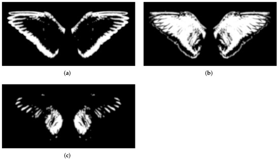 Threshold images used in the algorithm for “Wings“. (a) First threshold image. (b) Second threshold image. (c) Third threshold image.